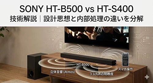 - 一言でいうと?:「映画館の臨場感」を家でも味わいたいならHT-B500、テレビの音を「まとも」にしたいだけならHT-S400。
