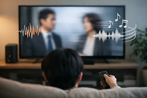 「最近のドラマ、BGMや効果音ばかり大きくてセリフがボソボソ聞こえる…」「ニュースのキャスターの声がこもって聞き取りにくい」「音量を上げると家族から『うるさい!』と怒られる」